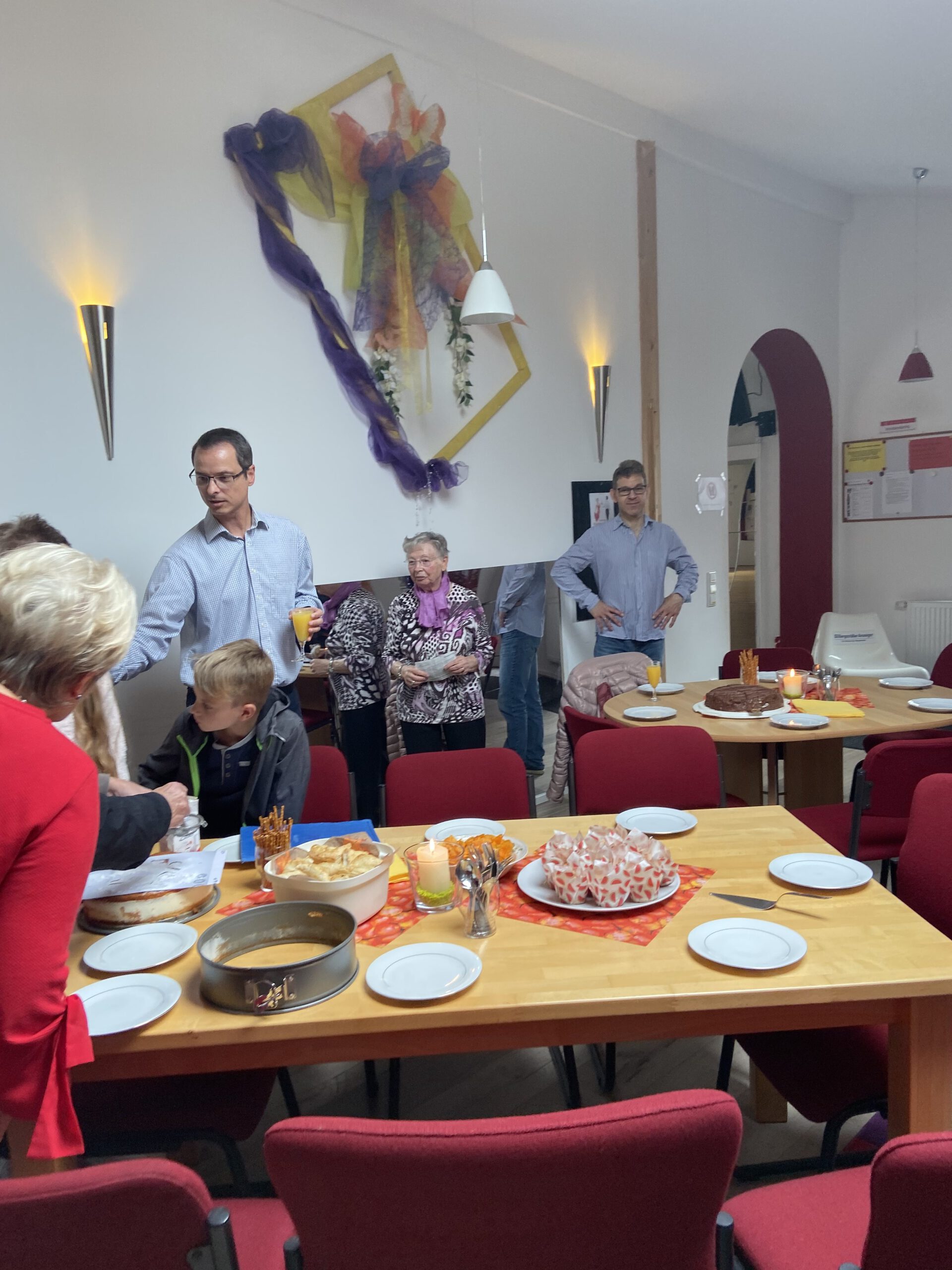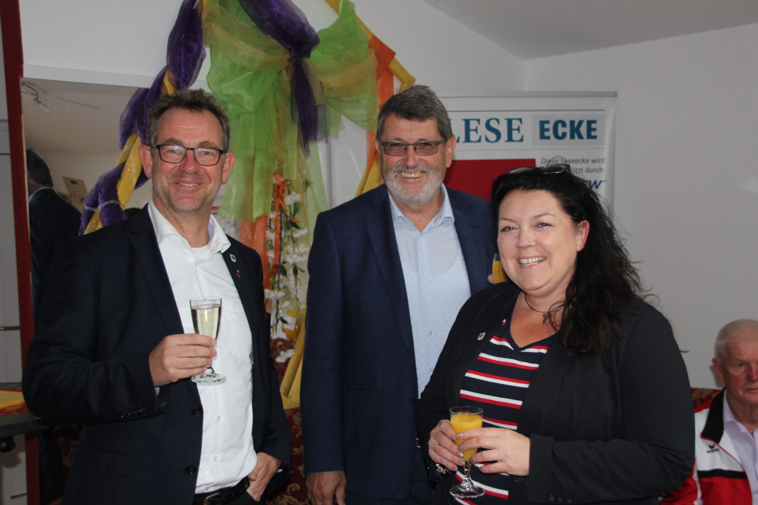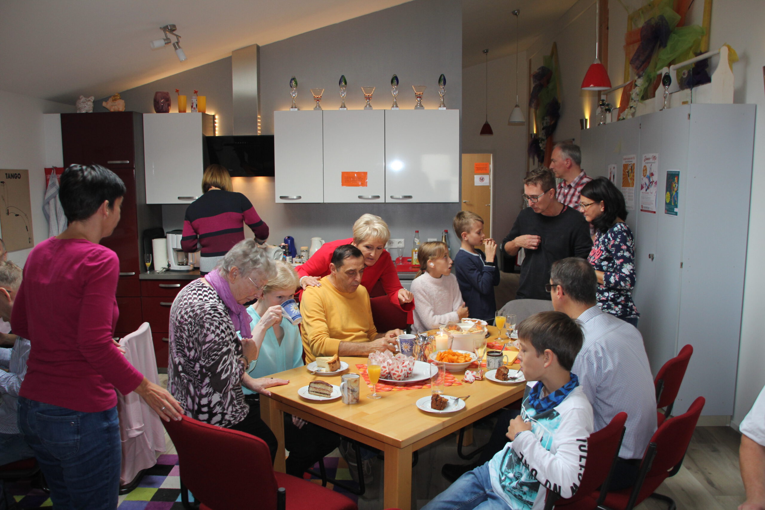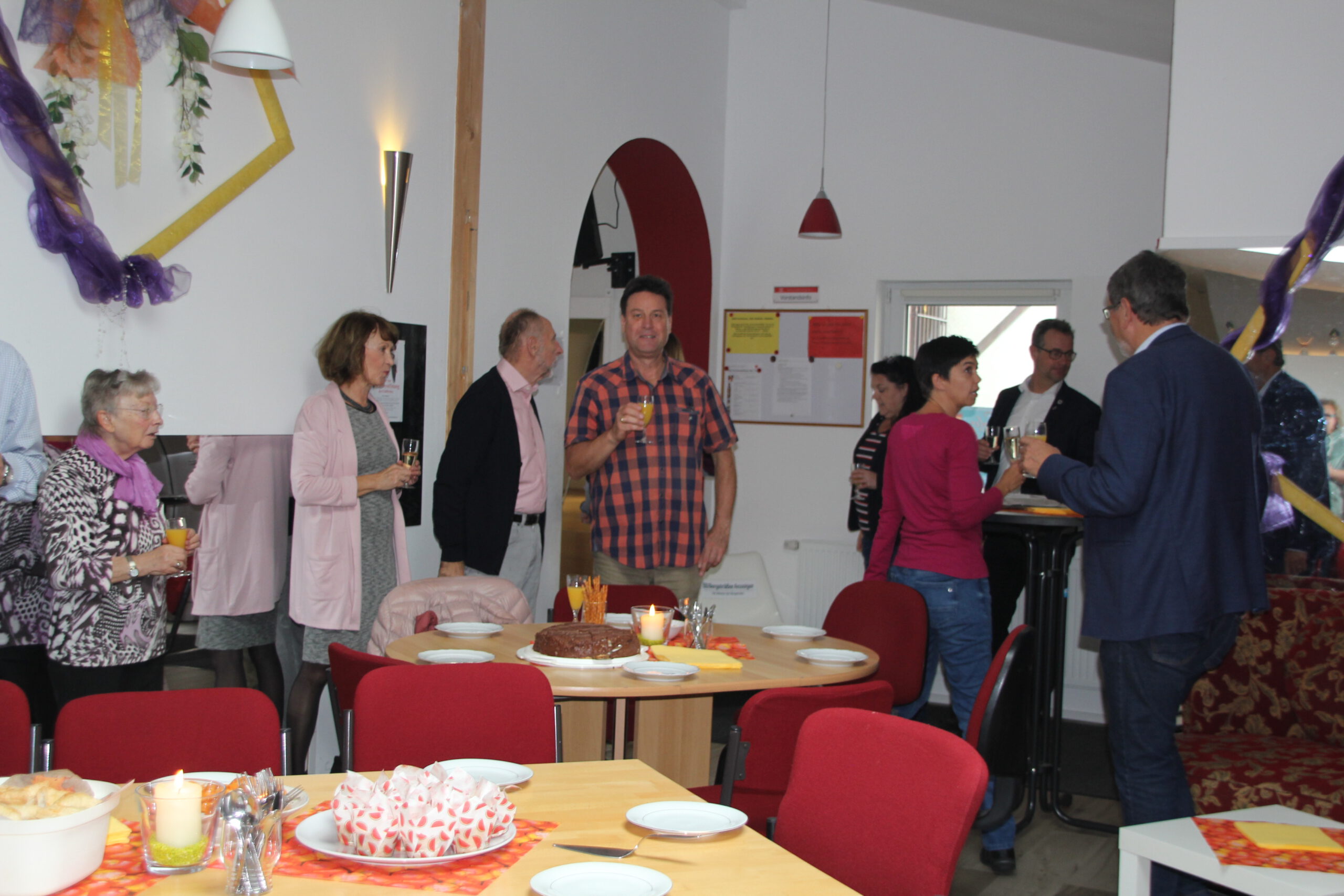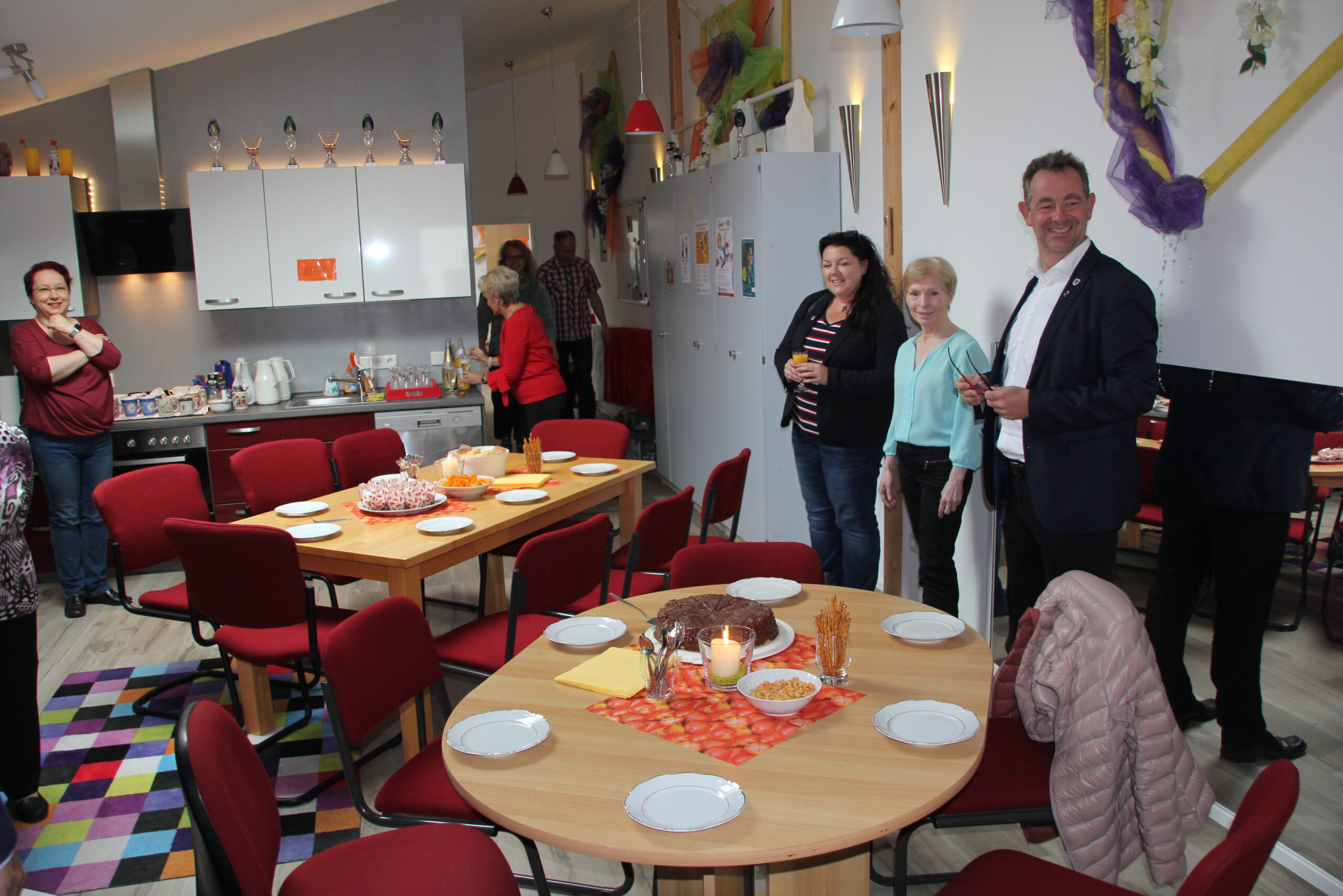 Die “Wiedereröffnung” des Clubheims ist für uns Tänzer natürlich eine willkommene Gelegenheit, eine Flasche Sekt zu öffnen und zu feiern. Außerdem mit Kaffee und Kuchen ausgestattet haben wir uns zusammen mit Bürgermeister Christian Schönung, Erstem Stadtrat Klaus Schwab und der Stadtverordnetenvorsteherin Christiane Ludwig-Paul sowie den Gründungsmitgliedern Hans-Jürgen und Brigitte Sander getroffen und gefeiert. Und neue Pläne wurden auch geschmiedet, denn im nächsten Jahr möchten wir unseren 40. Geburtstag feiern.