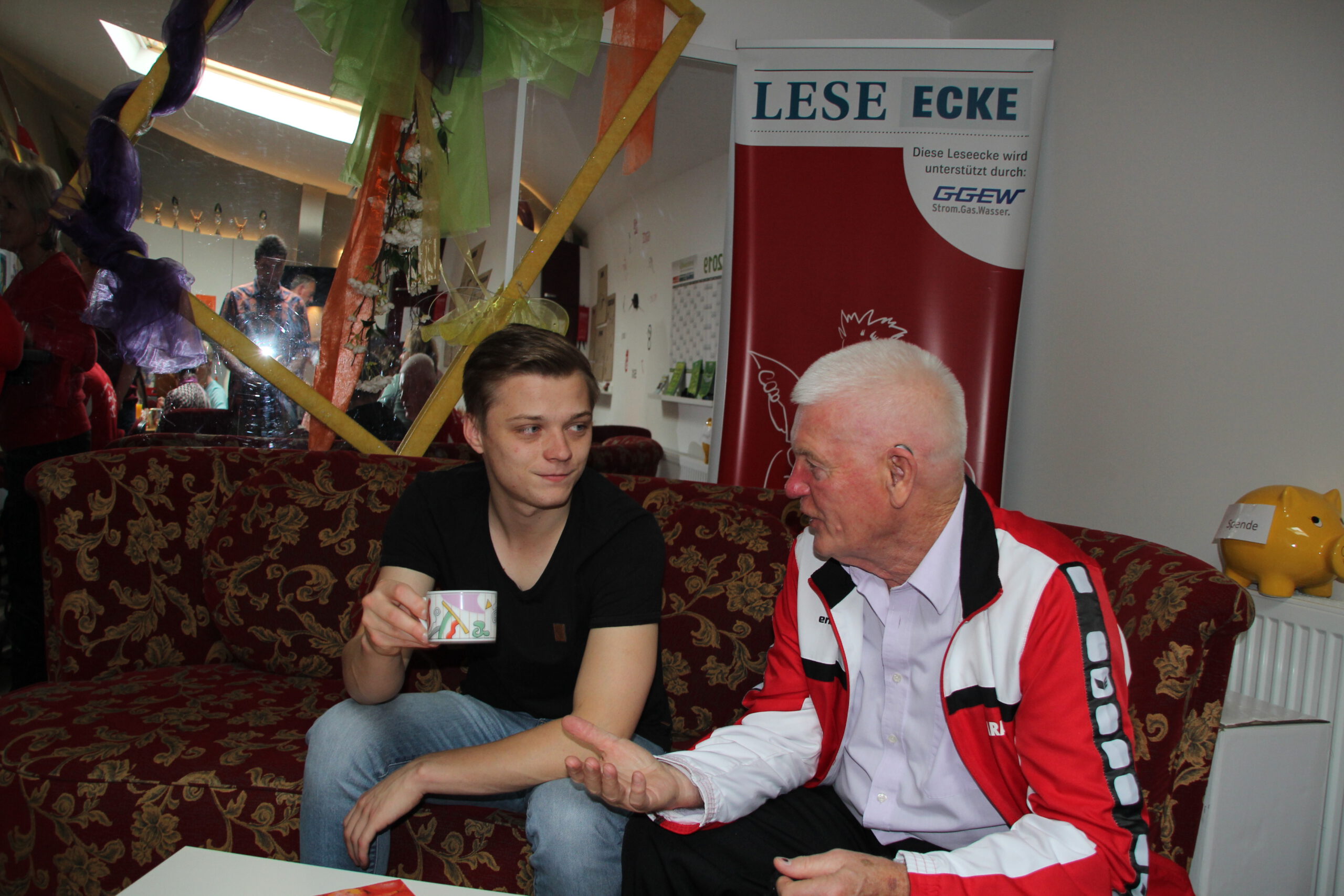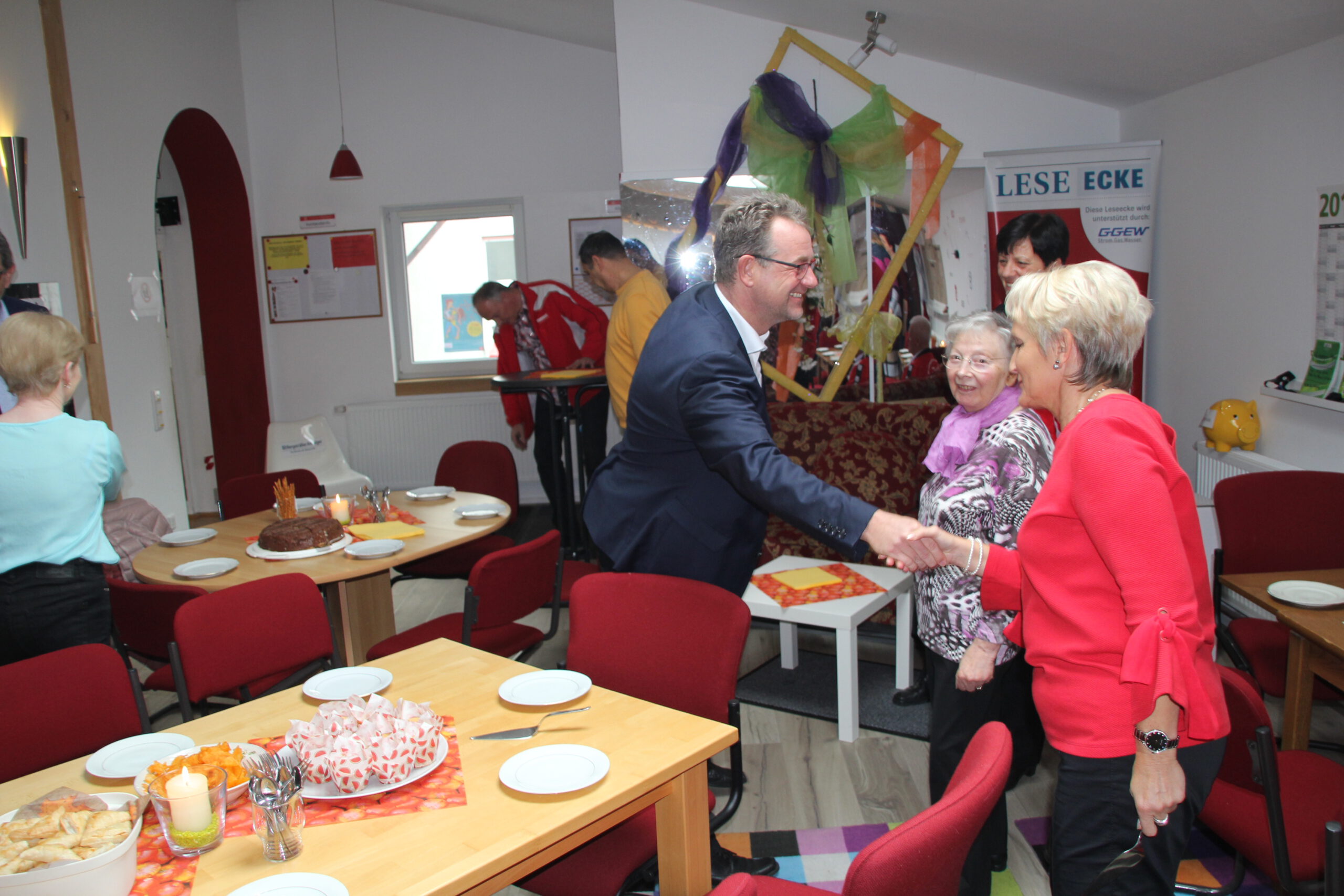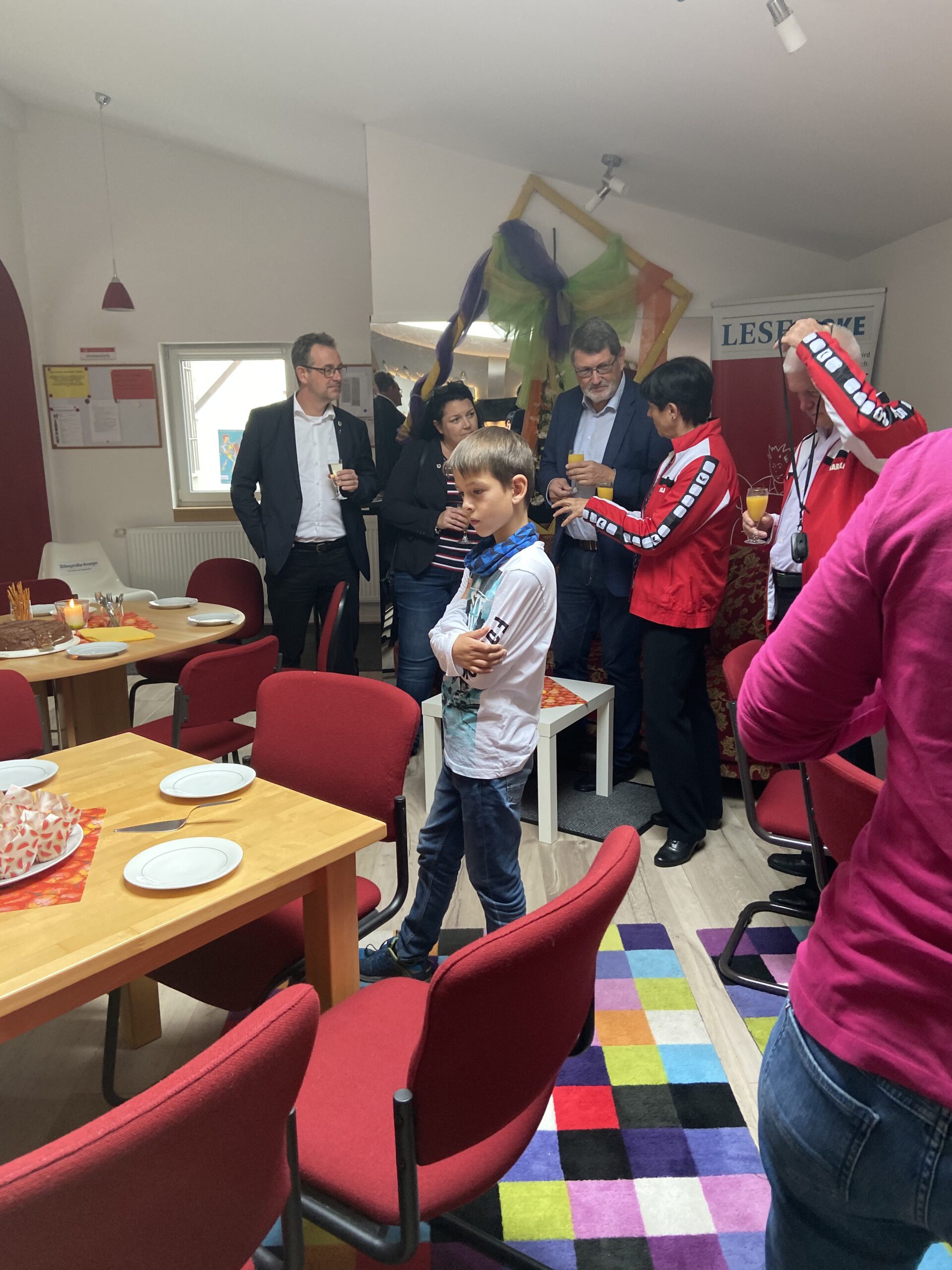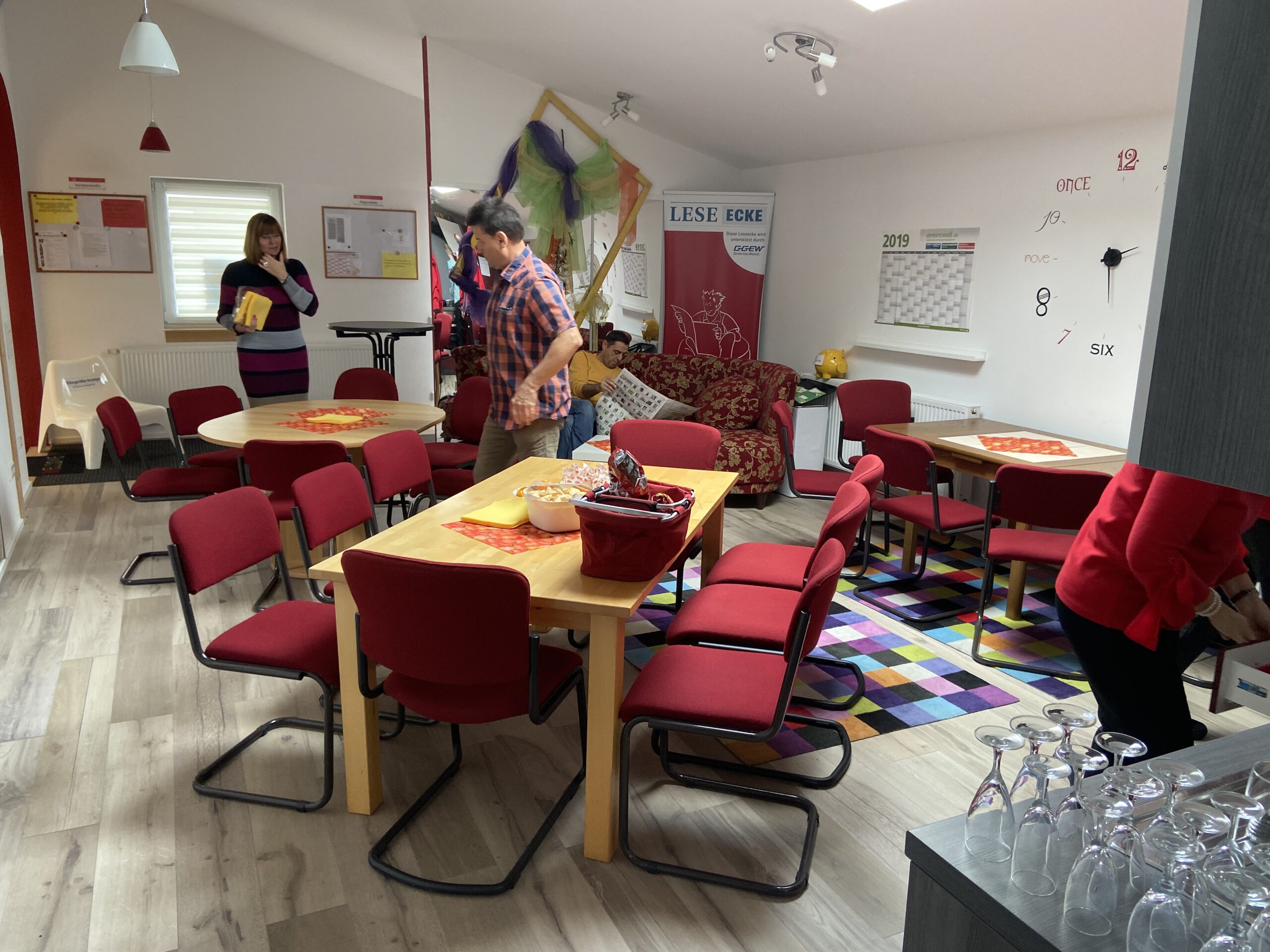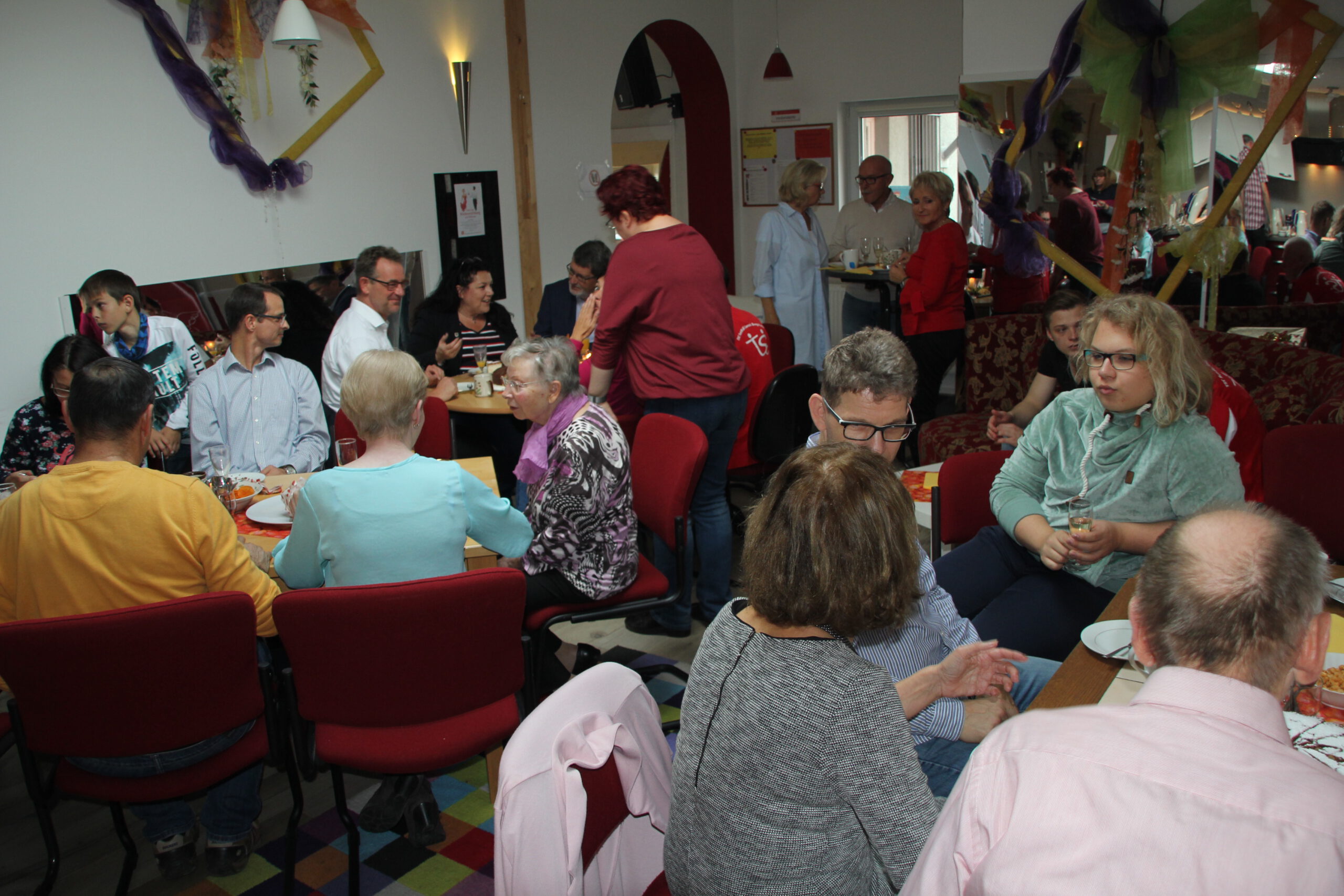 Die “Wiedereröffnung” des Clubheims ist für uns Tänzer natürlich eine willkommene Gelegenheit, eine Flasche Sekt zu öffnen und zu feiern. Außerdem mit Kaffee und Kuchen ausgestattet haben wir uns zusammen mit Bürgermeister Christian Schönung, Erstem Stadtrat Klaus Schwab und der Stadtverordnetenvorsteherin Christiane Ludwig-Paul sowie den Gründungsmitgliedern Hans-Jürgen und Brigitte Sander getroffen und gefeiert. Und neue Pläne wurden auch geschmiedet, denn im nächsten Jahr möchten wir unseren 40. Geburtstag feiern.