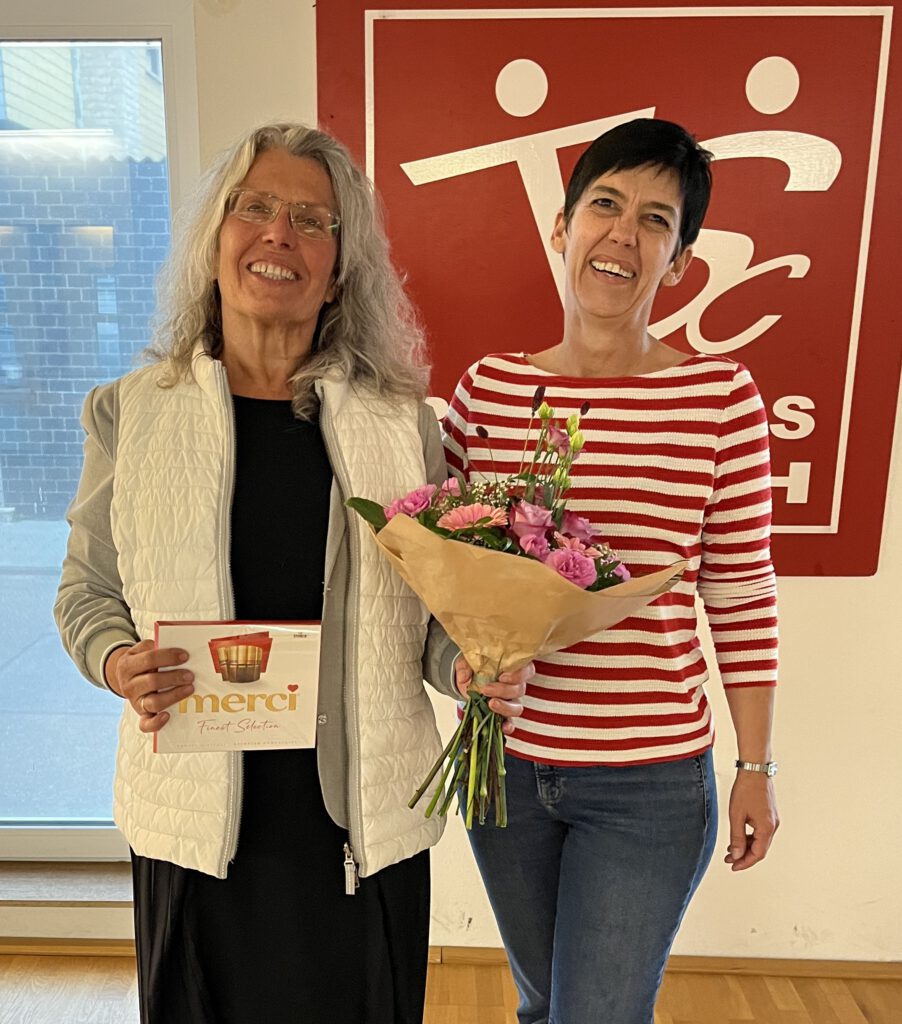 Im Namen des Vorstands und aller Mitglieder dankte Michaela Nimz der ausscheidenden Anette Eckerle ganz herzlich für die viele gute Arbeit, die sie in den zurückliegenden Jahren für uns geleistet hat. Der Blumenstrauß war dazu ein kleines Symbol. Das Mercie galt auch ihrem Mann Peter, der sie im Hintergrund stets unterstütze und inbesondere bei der Einrichtung des im letzten Jahr neu beschafften Kassenprogramms sehr hilfreich war.